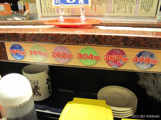 日本的迴轉壽司很平價~價位最貴一盤也才100多元台幣