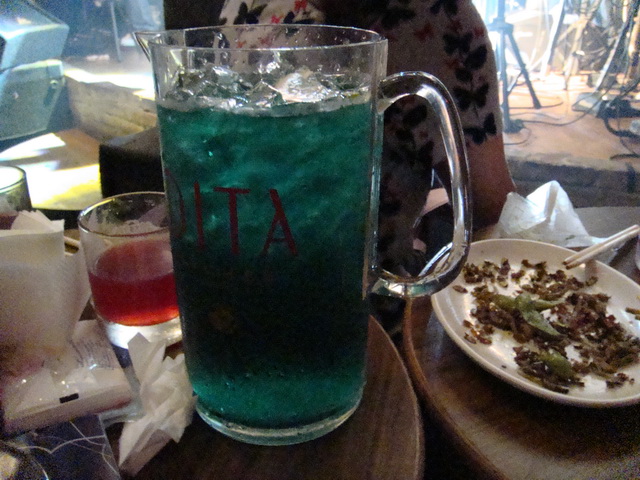 左邊這壺是蔓越莓的調酒 右邊藍色的喝起來最不好喝 感覺像七喜+伏特加的味道 還是第一壺最好喝