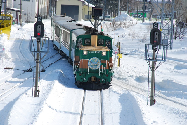 可是5.5小時說長還是挺長的一段時間 如果搭普通JR在火車上應該會很無聊,,如果是搭觀光列車,車上很多有趣的活動可以玩時間會相對過的很快心一橫不管啦,, 就訂這班好了,,如果沒能趕上流冰船反正心裡的替代方案還很多種...大不了去網走湖冰上釣魚囉