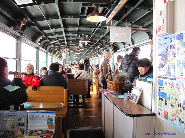 北海道這些冬季列車的特色就是每節列車中會有個炭火烤爐