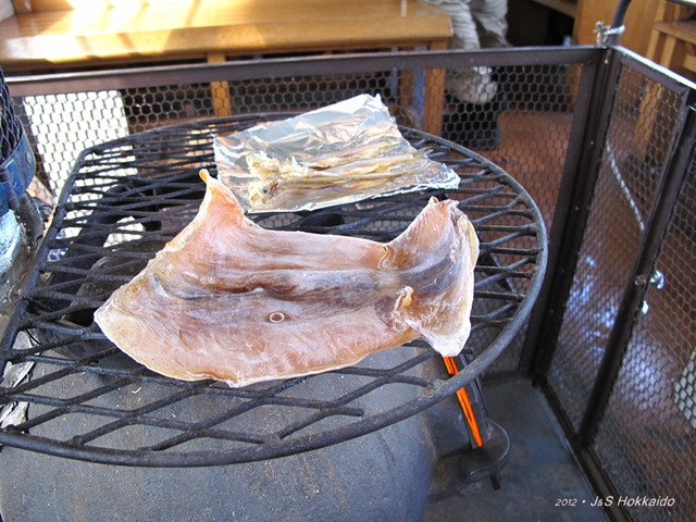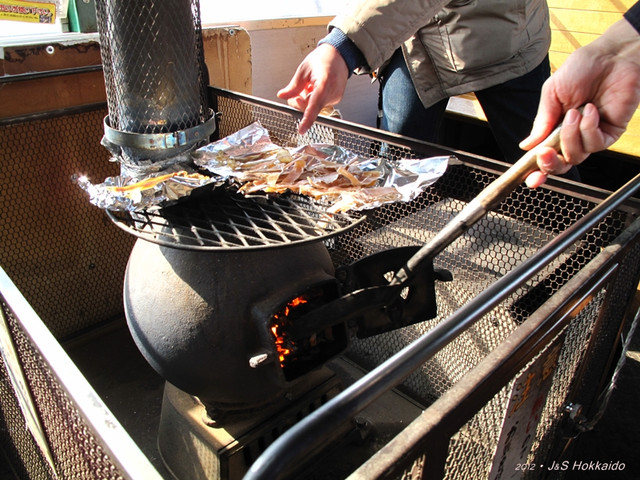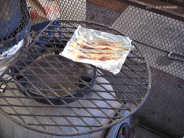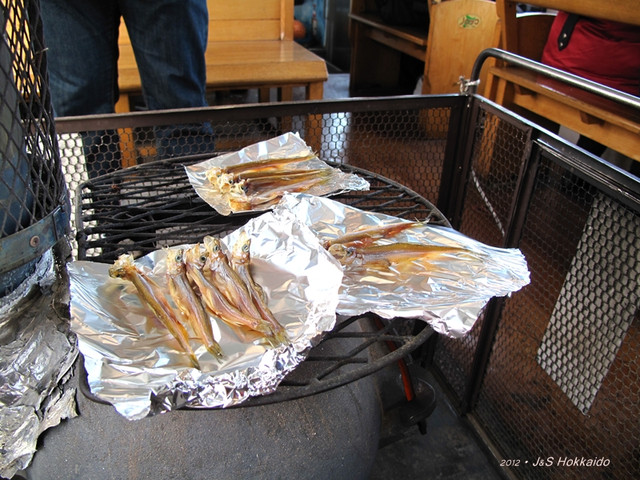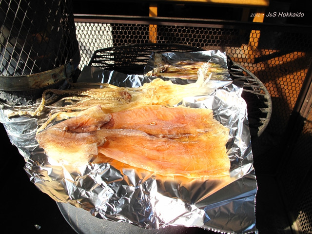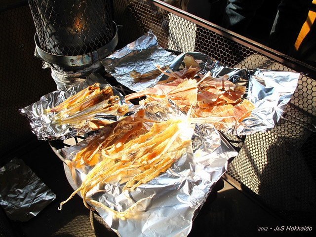 遊客可以在烤爐上烤魷魚....公魚...等來吃